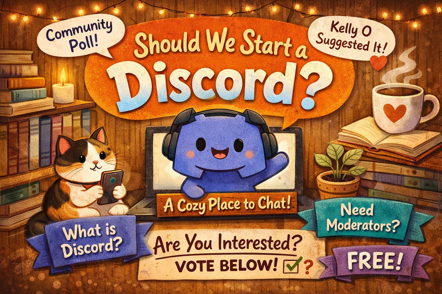 Kelly O suggested a Discord for our community. I’m considering it because it’s calmer than Facebook, totally free, and organized. Before I build anything, I want to know if you’d actually want it. Vote in the poll and tell me what you think.